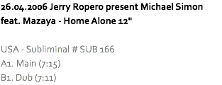 26.04.2006 Jerry Ropero present Michael Simon feat. Mazaya - Home Alone 12" USA - Subliminal # SUB 166